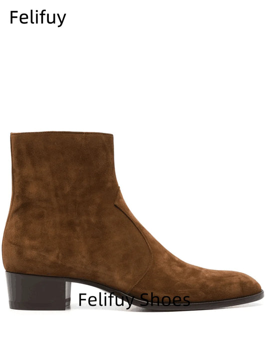 Bottines Chelsea Homme en Daim de Vache Marron Fait Main