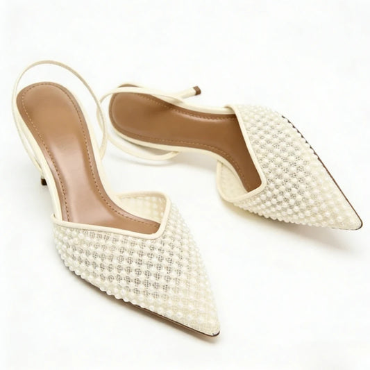 Escarpins Slingback Brodés de Perles à Talons Hauts Élégants