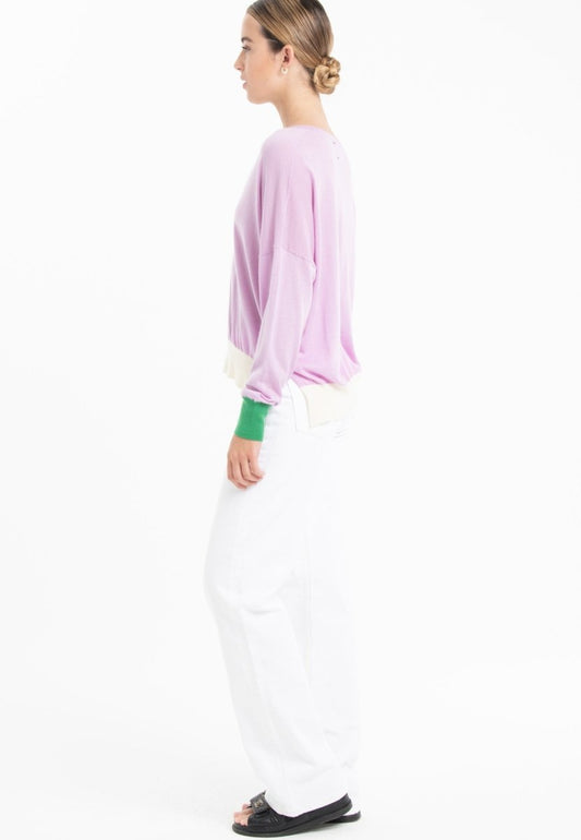 Pull col V femme en cachemire & laine ultrafin lavande & vert & blanc - KELLY 10