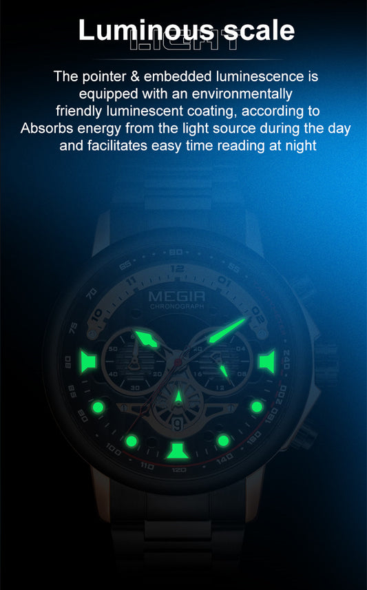 MEGIR Luxury Men Watches Stainless Steel Quartz Wristwatches Fashion Men Business Watch Clock Male Chronograph Relogio Masculino 2223